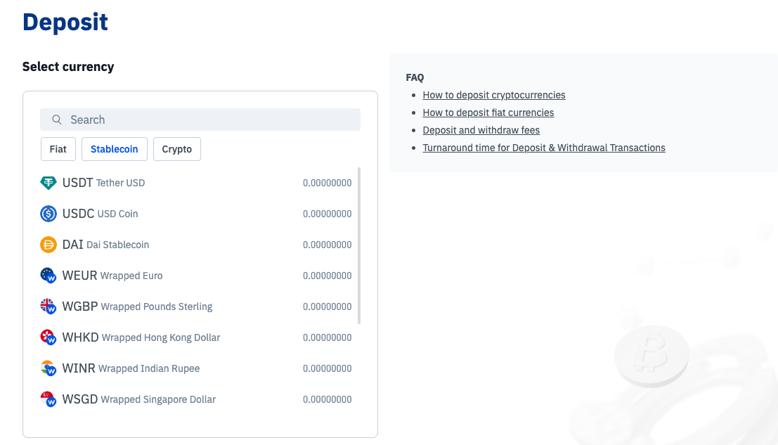 • Click Deposit and select USDT (Tether) as your deposit currency.